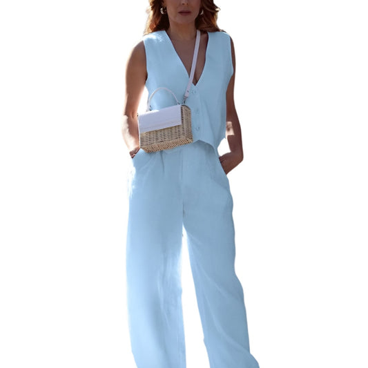 Cora | Ensemble d'Été en Lin pour Femme avec Gilet et Pantalon Large
