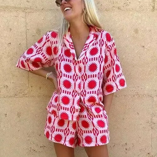Lady | Ensemble chemise à boutons imprimé soleil et short pour femmes