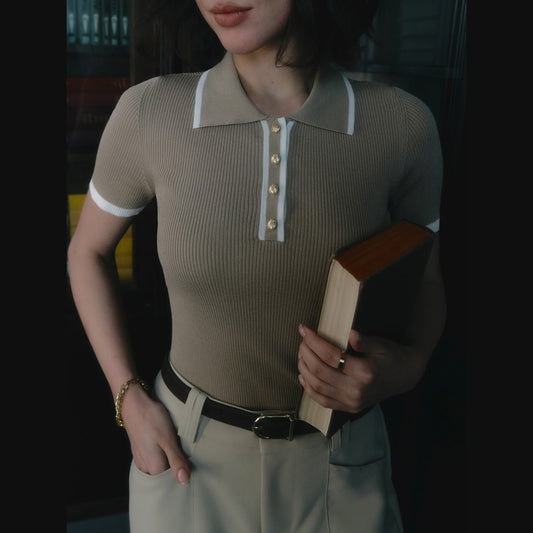 Danica | Haut polo côtelé classique avec détail de boutons pour femmes