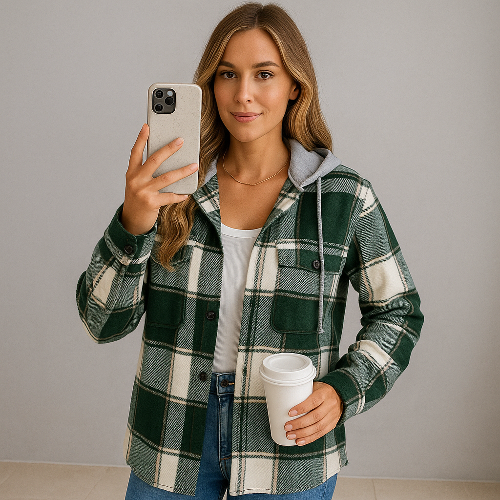 Ce manteau à carreaux pour femme associe des motifs classiques à un style moderne, parfait pour un look élégant en automne ou en hiver.