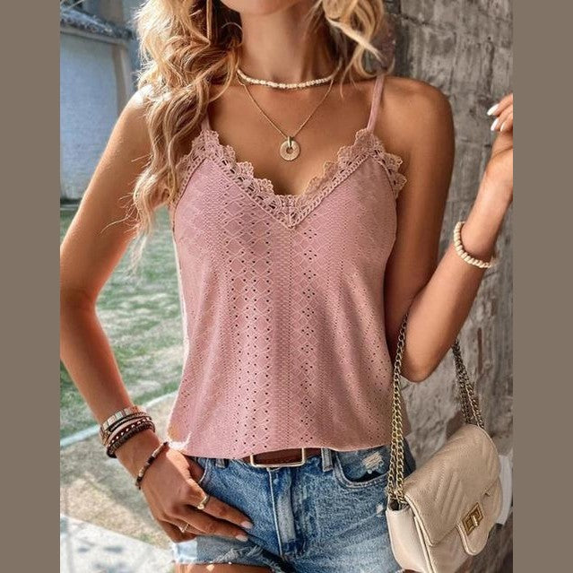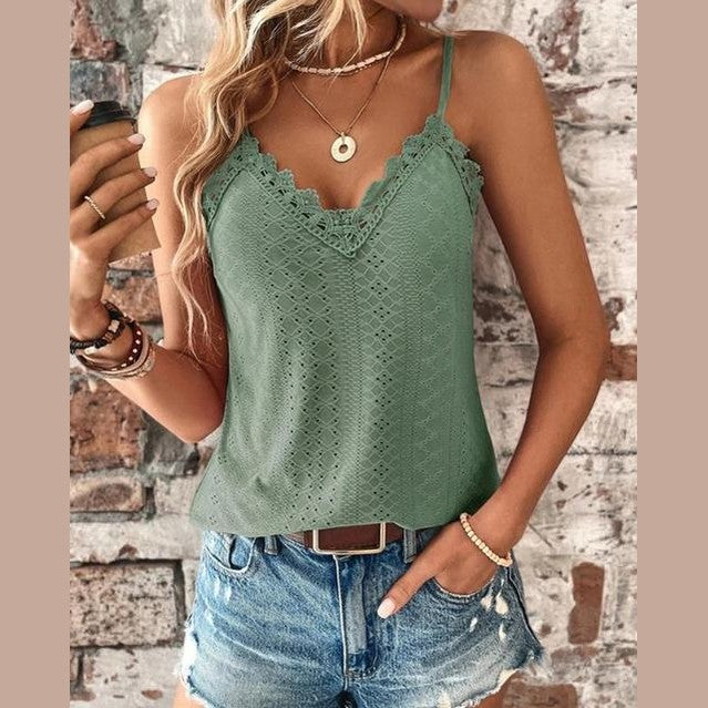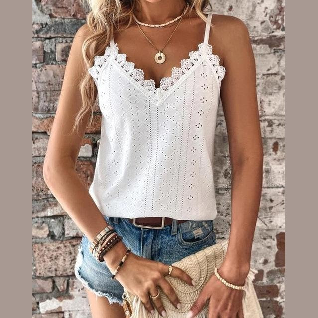Le haut sans manches Izabelle présente des détails en dentelle délicate, parfaitement associés à un tissu doux et respirant pour un confort optimal. Les bords festonnés et le décolleté en V mettent en valeur l’attrait féminin du top, créant ainsi un design intemporel qui est aussi agréable à porter qu’à regarder.