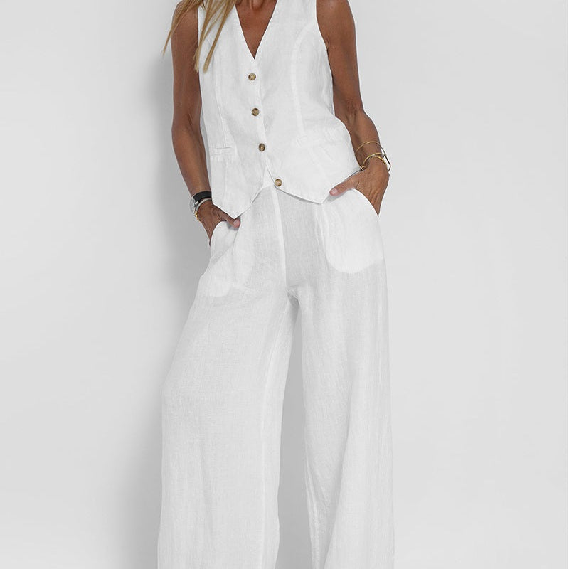 Marceline | Ensemble en lin sans manches avec gilet à col en V pour femme
