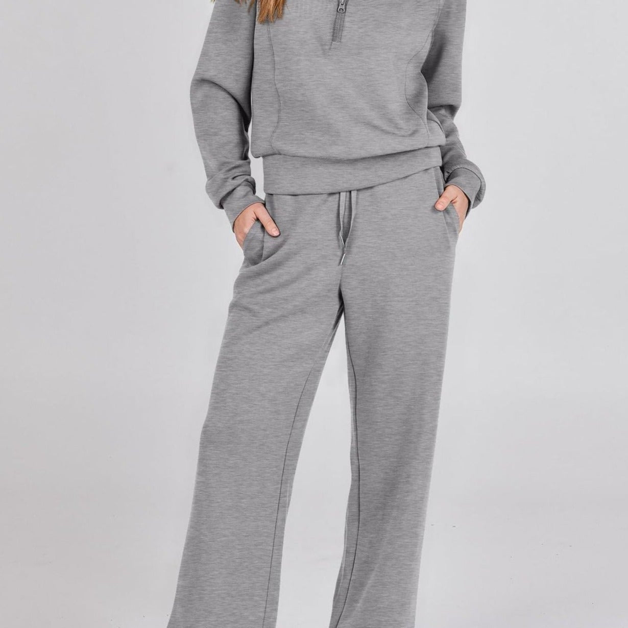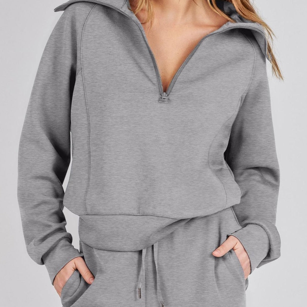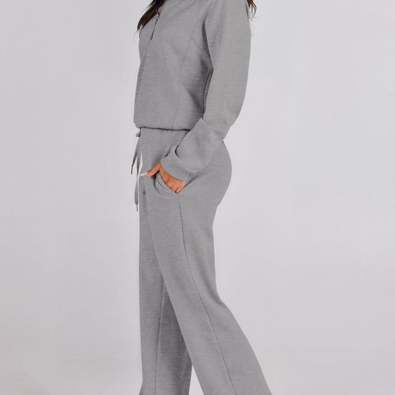 Découvrez l’ensemble Sonia deux-pièces, où le style décontracté rencontre l'élégance polyvalente. Avec une fermeture éclair moderne et une coupe ajustée, cette tenue est parfaite pour les journées confortables à la maison et les sorties décontractées. Les manches longues et la coupe épurée créent un look aussi confortable que chic.