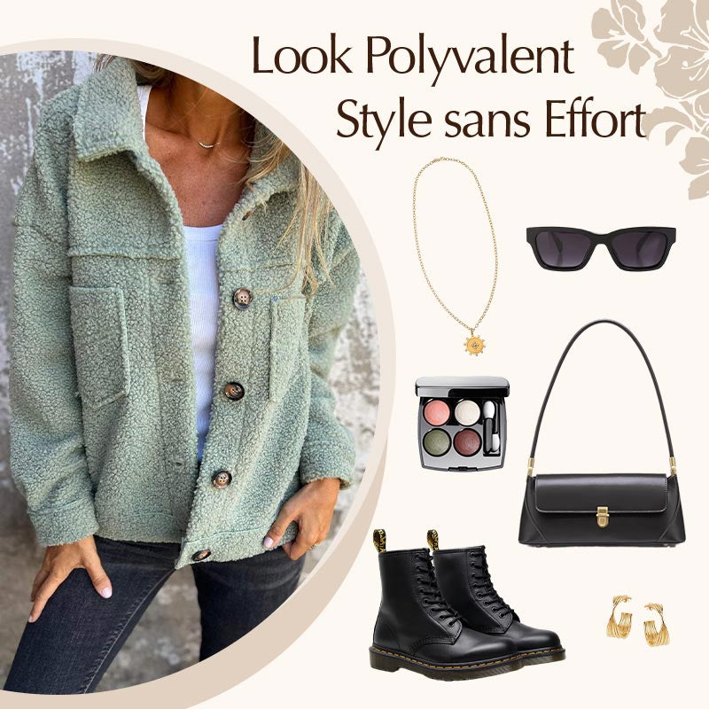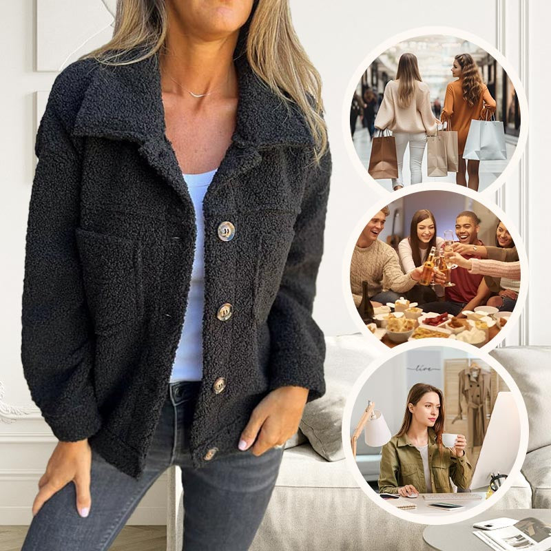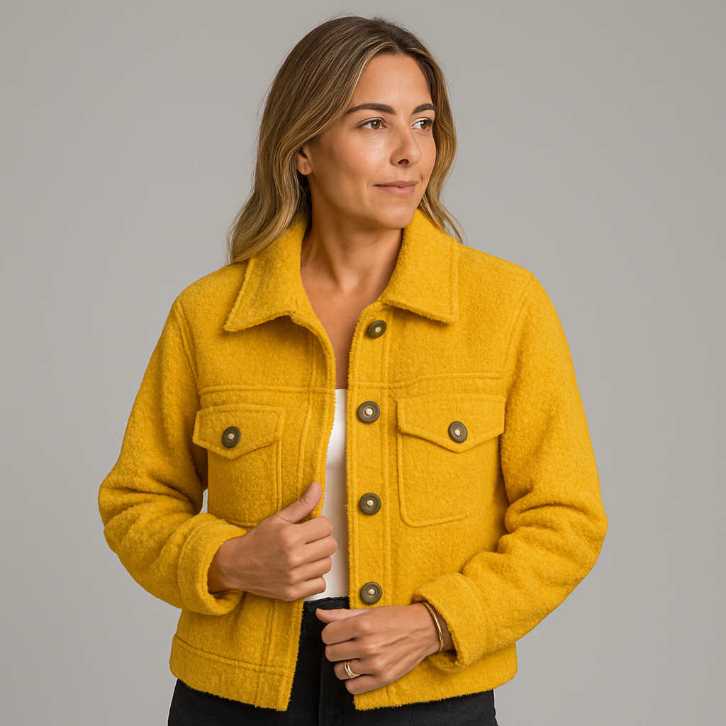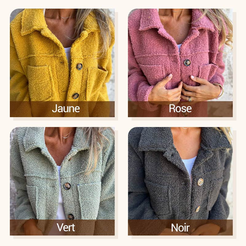 Veste Courte en Laine avec Poches et Col Classique pour Femmes